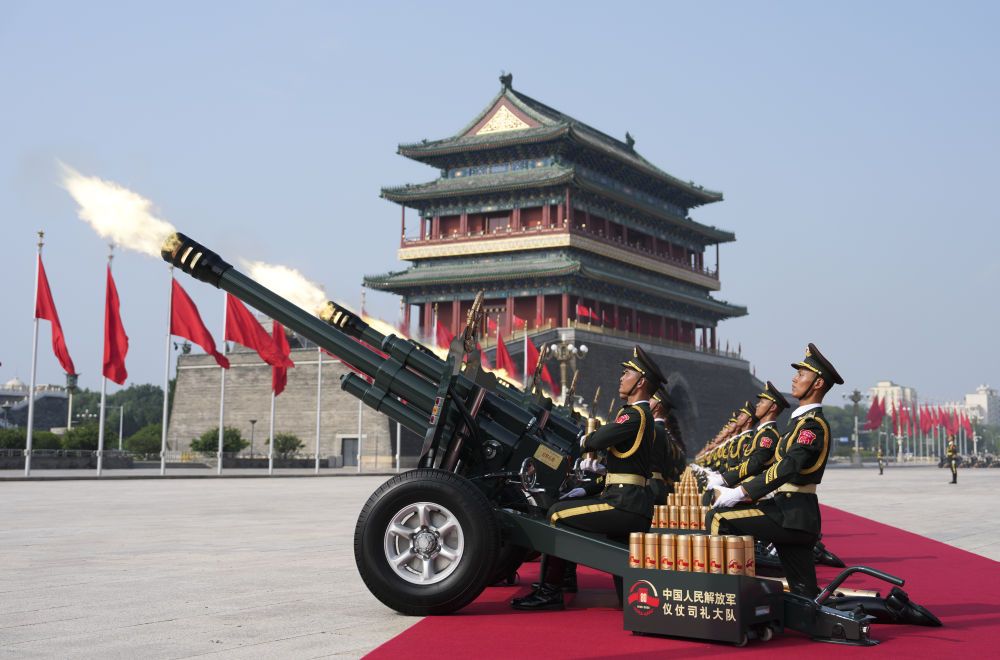 2025年9月3日,紀念中國人民抗日戰(zhàn)爭暨世界反法西斯戰(zhàn)爭勝利80周年大會在北京隆重舉行。這是禮炮在天安門廣場鳴響。新華社記者 牟宇 攝