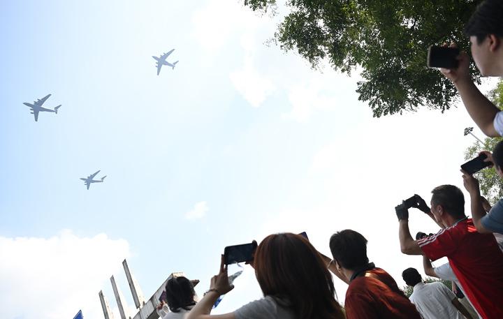 這是一支聯合的力量。空中受閱梯隊由陸、海、空三個軍種29型飛機編成。
